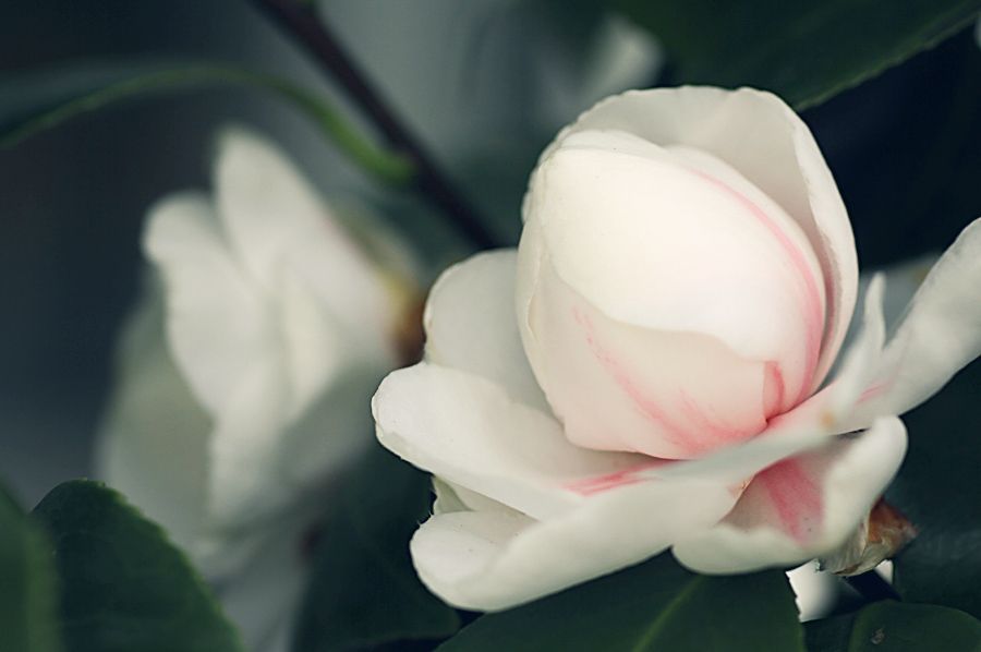 "Today I am admiring the soft perfection of my Camellia"