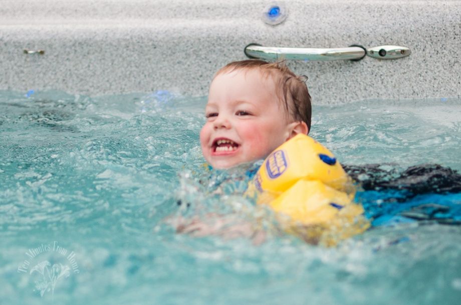 He (and all my children) loved swimming in my friend's swim-spa :D