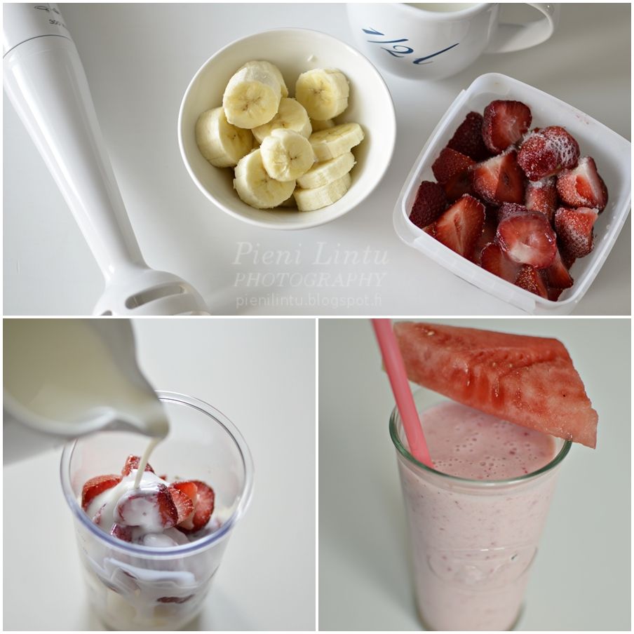 Healthy smoothie: Frozen strawberries, banana and soured milk