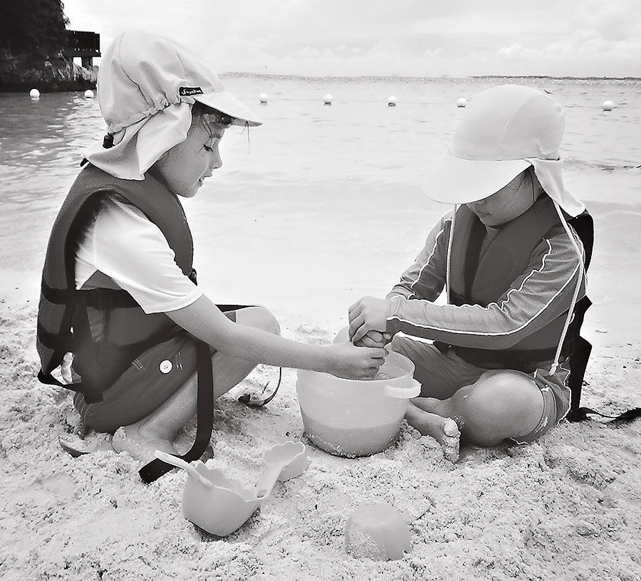 "These two preferred to stay and build sand castles than go snorkeling with the boys."