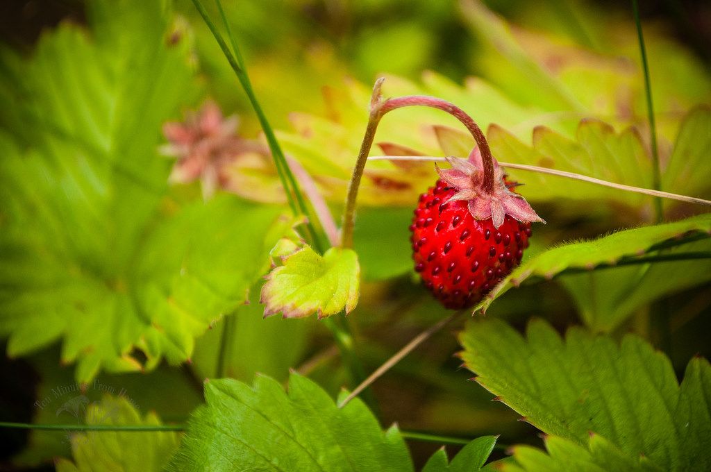 My one and ONLY wild strawberry fruit this year (the children were too impatient to let the others grow),