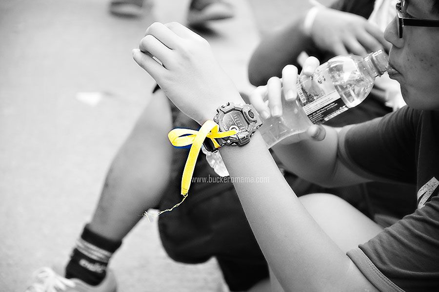 People wearing yellow ribbons in support of the protesters.