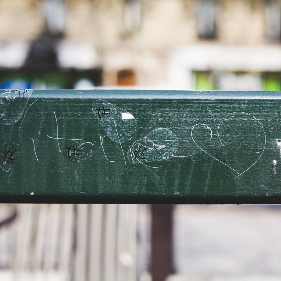 Pierre Herme stickers on a Paris bench